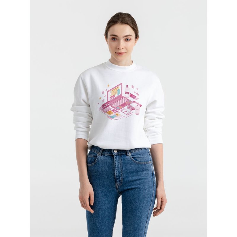 Толстовка унисекс с втачными рукавом. Изнанка: мольтон с начесом. Укрепляющая тесьма по вороту, манжеты, ворот и низ толстовки связаны резинкой с эластаном.