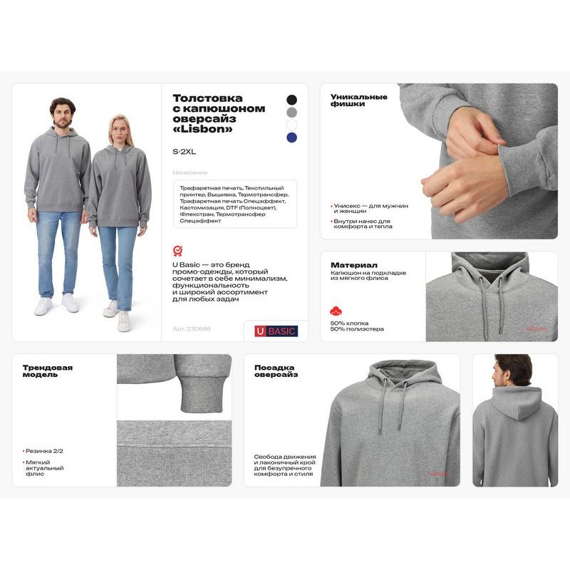 Толстовка с капюшоном из мягкого флиса из смеси хлопка и полиэстера. Модель комфортной и актуальной посадки оверсайз отлично подходит для обычной жизни и в качестве промо мерча.