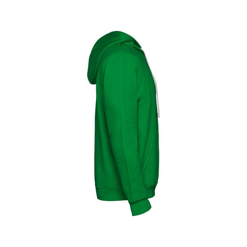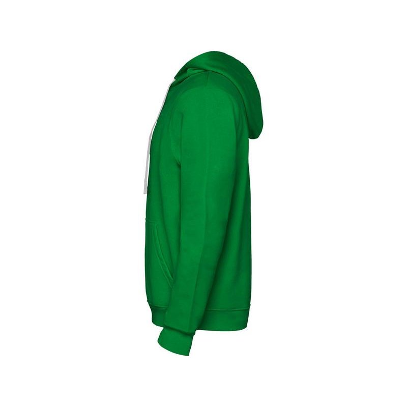 Худи с капюшоном и шнурками. Отделка горловины спинки внутри тесьмой, Риб 1х1 по низу изделия и манжетам. Карман кенгуру.