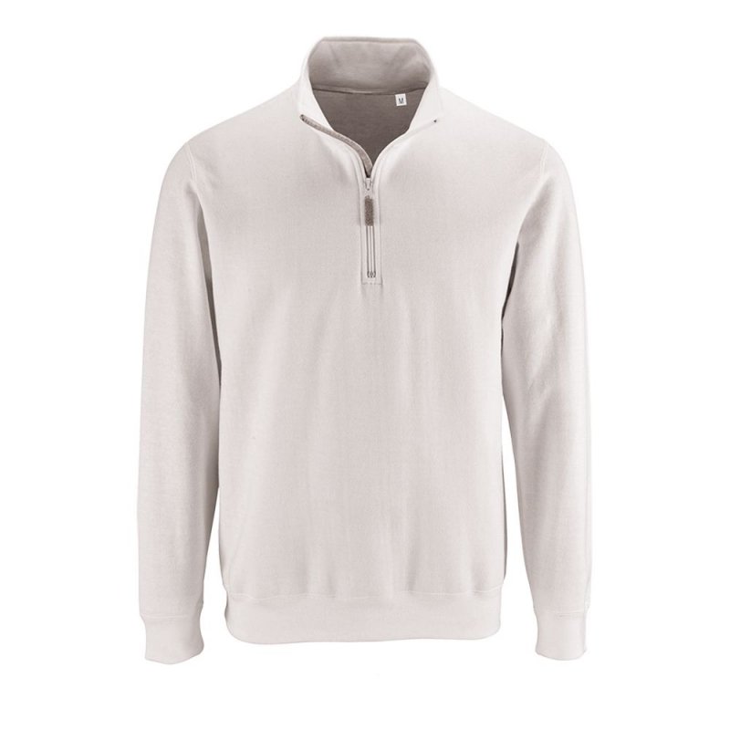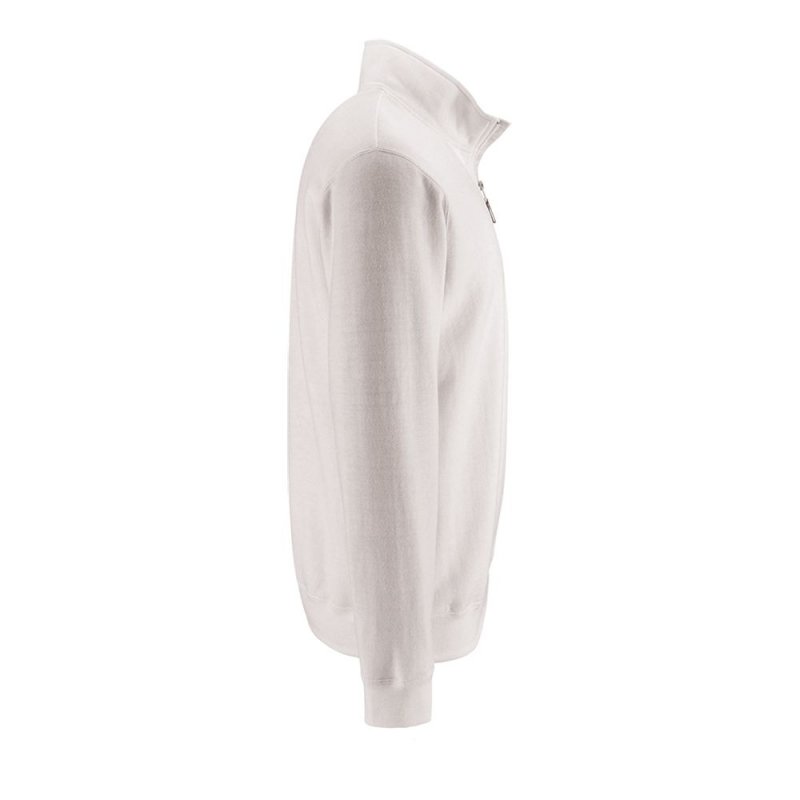 Толстовка с воротником-стойкой на молнии. Лейбл производителя в боковом шве изнутри, в шве горловины - только бирка с размером, что позволяет вам нанести свой логотип.