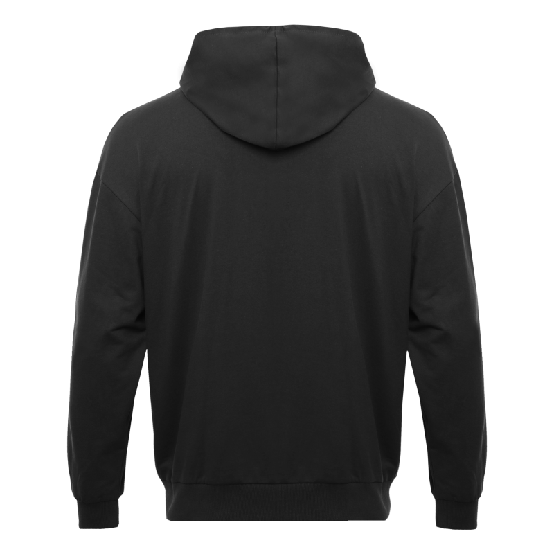 Толстовка оверсайз-силуэта с глубоким капюшоном, спущенной линией плеча, карманом-кенгуру и застежкой на молнию. Глубина капюшона регулируется шнурком с пластиковым наконечником, а рукав и низ изделия дополнены плотной эластичной резинкой.