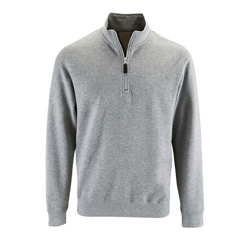 Толстовка с воротником-стойкой на молнии. Лейбл производителя в боковом шве изнутри, в шве горловины - только бирка с размером, что позволяет вам нанести свой логотип.