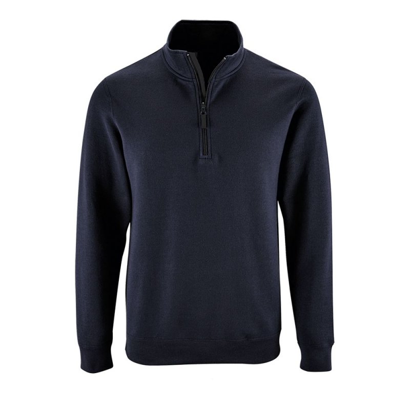 Толстовка с воротником-стойкой на молнии. Лейбл производителя в боковом шве изнутри, в шве горловины - только бирка с размером, что позволяет вам нанести свой логотип.