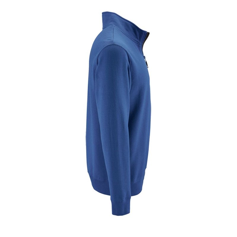 Толстовка с воротником-стойкой на молнии. Лейбл производителя в боковом шве изнутри, в шве горловины - только бирка с размером, что позволяет вам нанести свой логотип.