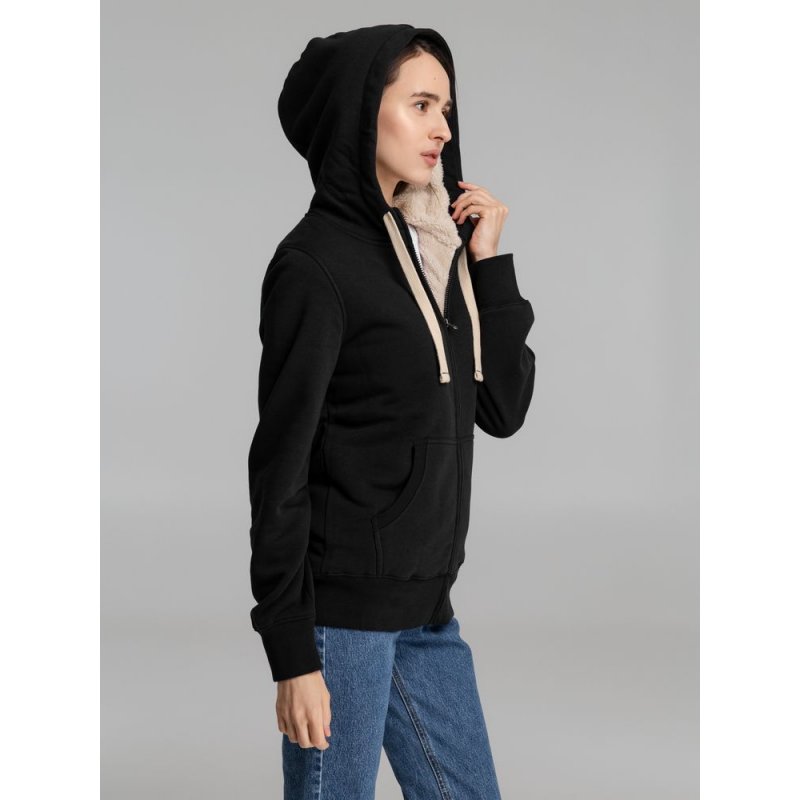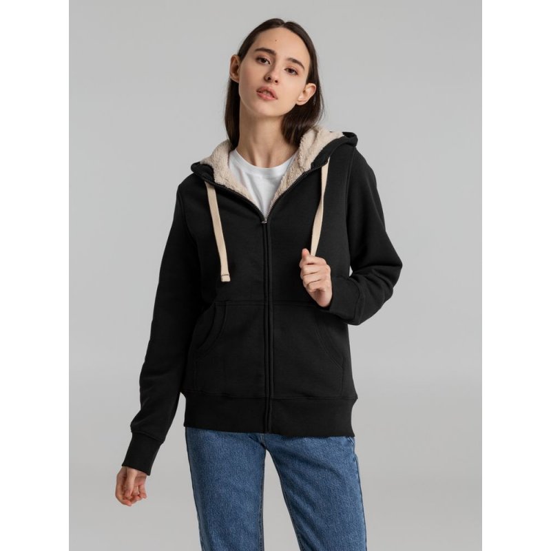 - Широкий съемный шнурок контрастного цвета на капюшоне