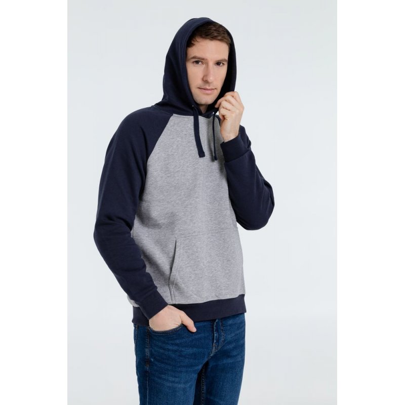 Двухцветная утепленная толстовка унисекс с рукавами реглан и карманом-кенгуру.