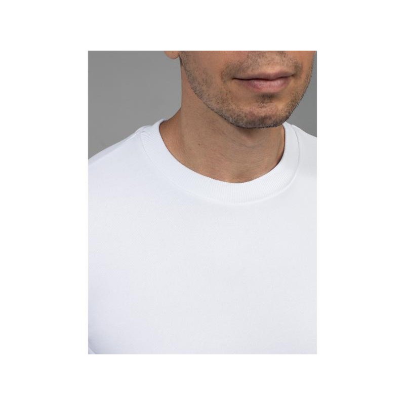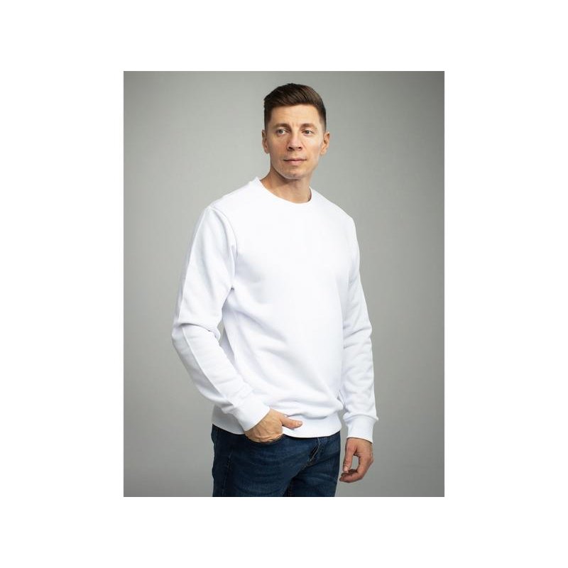 Свитшот прямого кроя с круглой горловиной и втачным рукавом. Особенности плетения полотна позволяют добиться эффекта 100% хлопка с внутренней стороны, обеспечивая гипоаллергенность и комфорт при носке, и 100% полиэстера с внешней стороны изделия, обеспечивая яркость красок нанесения и их износостойкость. Горловина, манжеты и низ зделия выполнены из полотна Кашкорсе (95% хлопок и 5% спандекс).