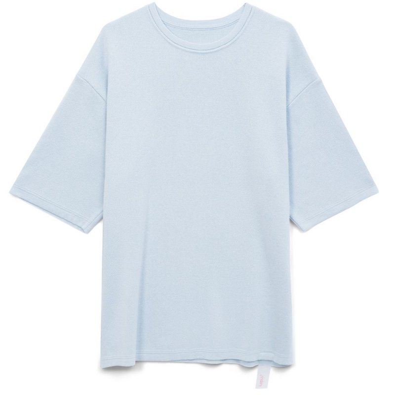 Siluetti Volumica — плотный вязаный джемпер-футболка прямого кроя с круглым вырезом и спущенной линией плеча. Фирменная бирка из силиконовой ленты станет интересной деталью, привлекающей внимание на фоне общей лаконичности модели.