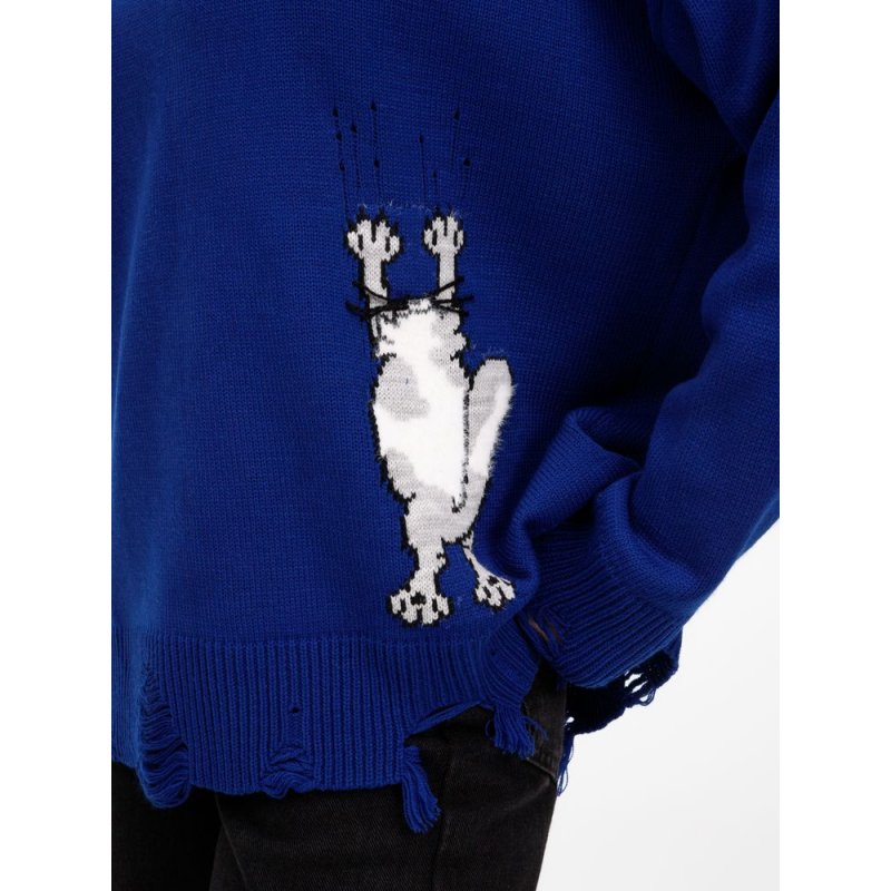 В дизайне мягкого джемпера с круглым вырезом Sharpick гранж-эстетика органично сочетается с милым акцентом — пушистым рисунком в виде озорного котика. Получается веселая вариация на тему того, откуда берется модная рваная одежда, а джемпер моментально создает настроение легкой несерьезности. Рваные края изделия добавляют современную нотку, а резинка на вороте, манжетах и по низу обеспечивает удобную посадку.