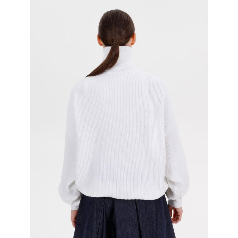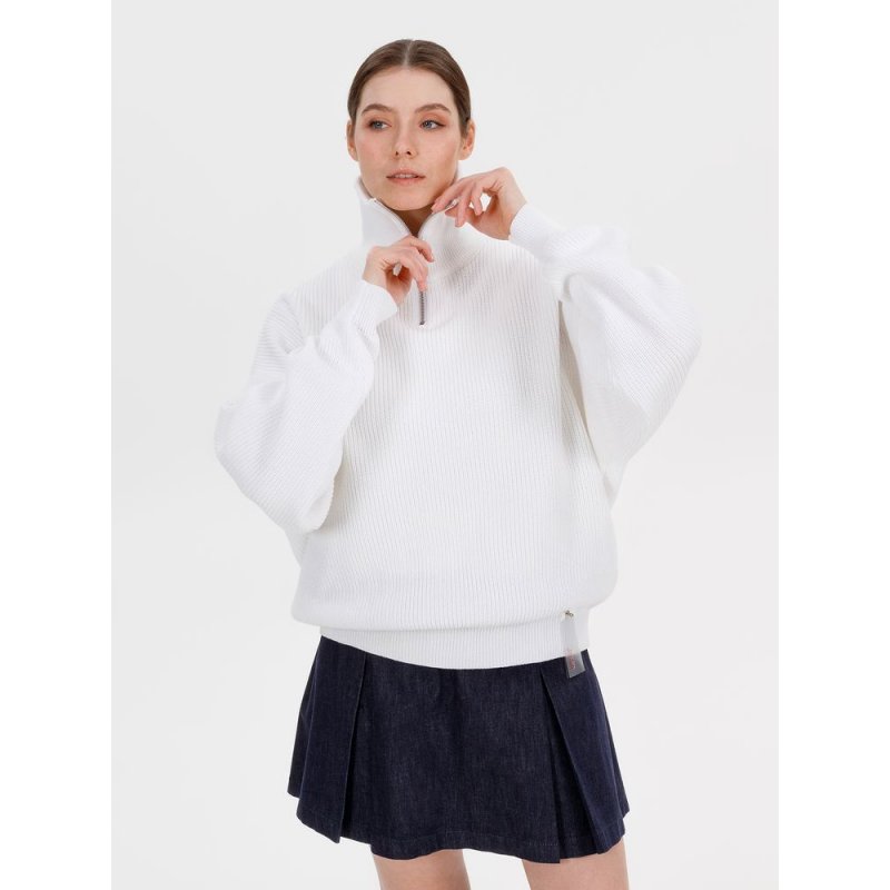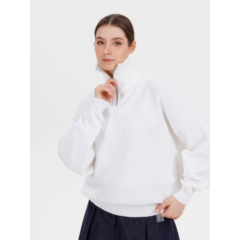 Siluetti Birne — плотный джемпер фактурной вязки со спущенной линией плеча позволит добавить в силуэт мягких линий и ненавязчивого объема, а также создать современный модный образ в лаконичном актуальном стиле, отдав при этом дань беспроигрышной классике. Дополнительным акцентом служит высокая горловина на молнии, а широкая резинка на рукавах и по нижнему краю изделия гарантирует максимальный комфорт.