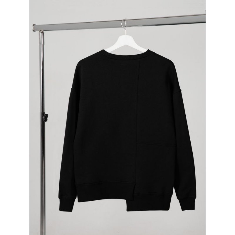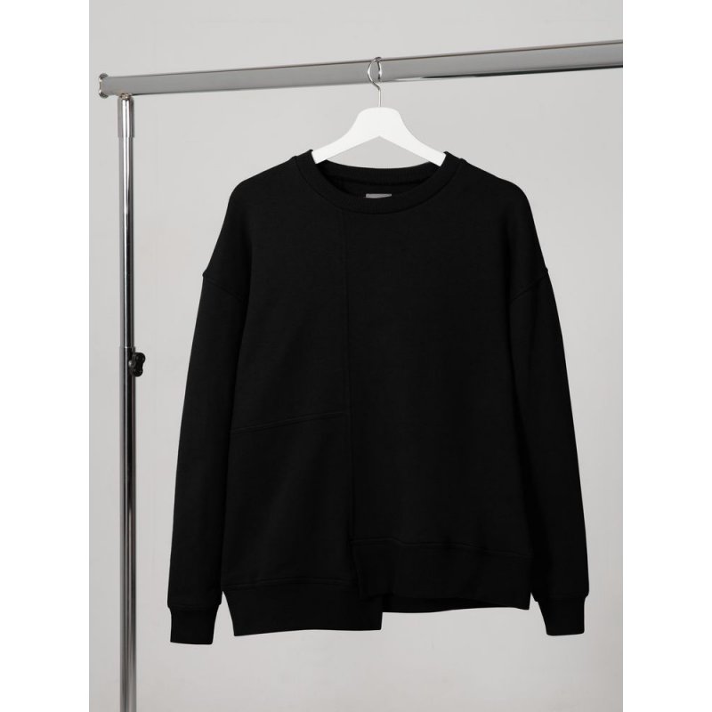 Свитшот унисекс свободного кроя со спущенным плечом и нестандартным нижним краем.