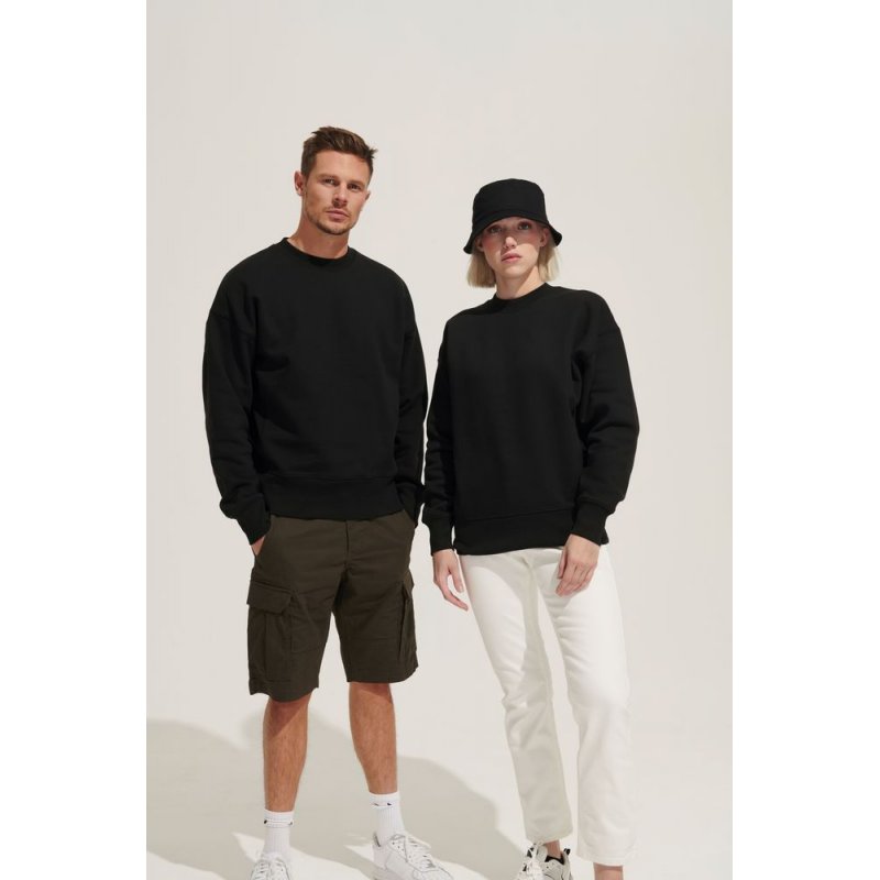 Свитшот унисекс свободного кроя со спущенным плечом и широким поясом.