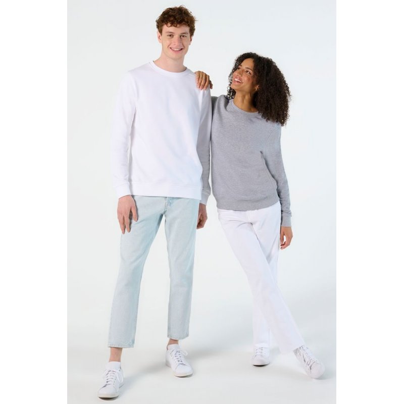 Свитшот унисекс из органического хлопка с круглым вырезом и втачным рукавом. Лейбл производителя в боковом шве изнутри, в шве горловины — только бирка с размером, что позволяет вам нанести свой логотип.