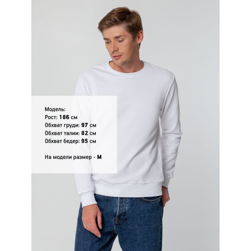 Классический свитшот унисекс с круглой горловиной и втачным рукавом. Благодаря особенности изготовления материала внутренняя сторона выполнена из хлопка, а внешняя из полиэстера.