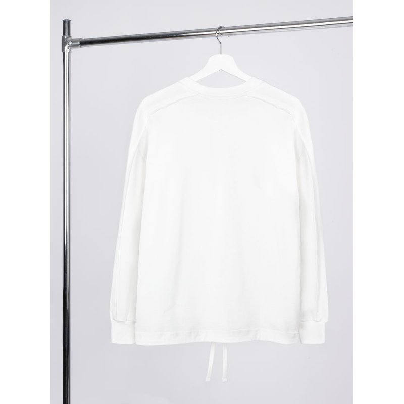 Свитшот унисекс оригинального пошива вдохнет новую жизнь в повседневный гардероб и добавит стильную нотку легкой небрежности в образ. Особая конструкция, где часть деталей — плечи и рукава — вывернута наизнанку, создает необычный притягательный эффект.