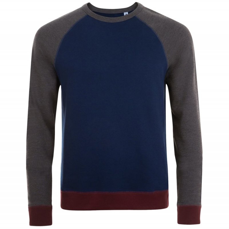 Трехцветный свитшот в стиле 80-х с рукавом реглан. Лейбл производителя в боковом шве изнутри, в шве горловины — только бирка с размером, что позволяет вам нанести свой логотип.