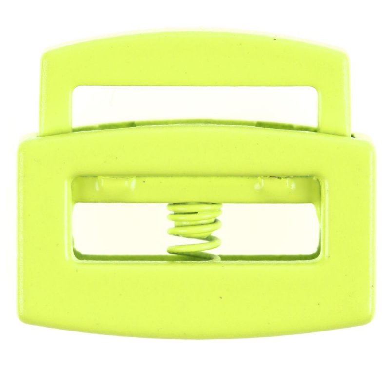 Для установки необходимо нажать на кнопу фиксатора и пропустить шнур через отверстие. Подходит для плоских шнуров, лент и резинок шириной до 1,5 см или для 2 круглых шнуров диаметром до 0,5 см.