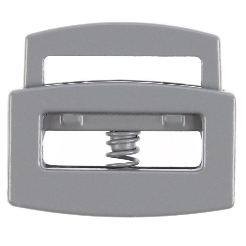 Для установки необходимо нажать на кнопу фиксатора и пропустить шнур через отверстие. Подходит для плоских шнуров, лент и резинок шириной до 1,5 см или для 2 круглых шнуров диаметром до 0,5 см.
