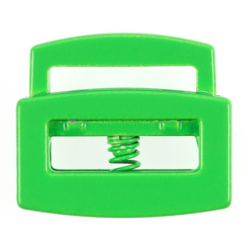 Для установки необходимо нажать на кнопу фиксатора и пропустить шнур через отверстие. Подходит для плоских шнуров, лент и резинок шириной до 1,5 см или для 2 круглых шнуров диаметром до 0,5 см.