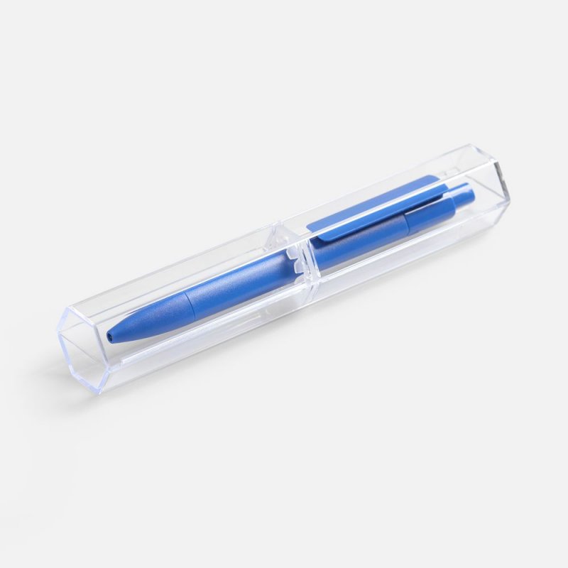 Пластиковый футляр шестигранной формы. Идеальный вариант упаковки для пластиковой ручки.