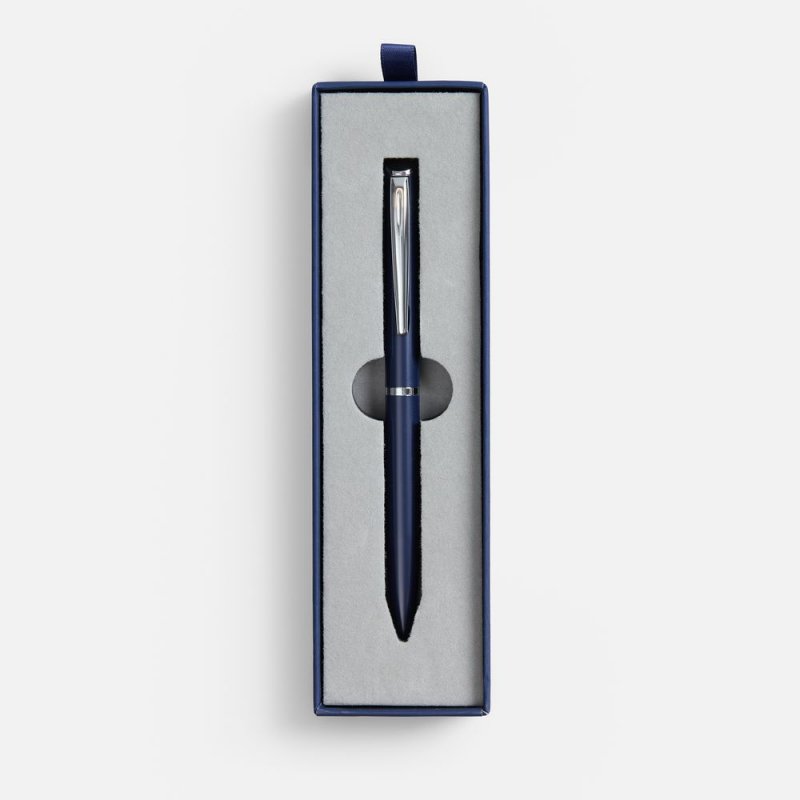 Картонный футляр с покрытием софт-тач с флокированным ложементом для одной ручки.
