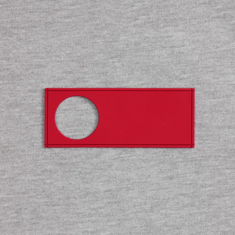 - сделать нанесение на изделии и поверх нашить лейбл так, чтобы вырубка стала частью целостного и уникального дизайна.