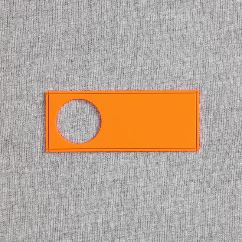 - сделать нанесение на изделии и поверх нашить лейбл так, чтобы вырубка стала частью целостного и уникального дизайна.