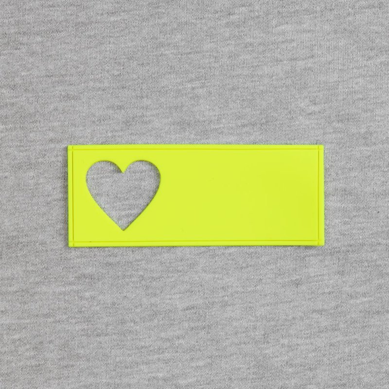- сделать нанесение на изделии и поверх нашить лейбл так, чтобы вырубка стала частью целостного и уникального дизайна