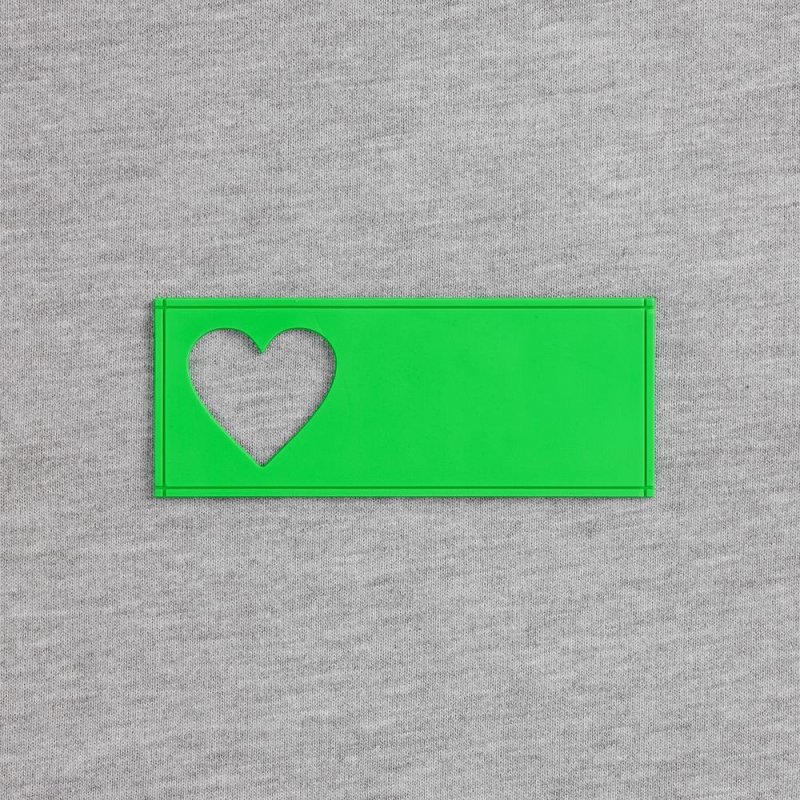 - сделать нанесение на изделии и поверх нашить лейбл так, чтобы вырубка стала частью целостного и уникального дизайна
