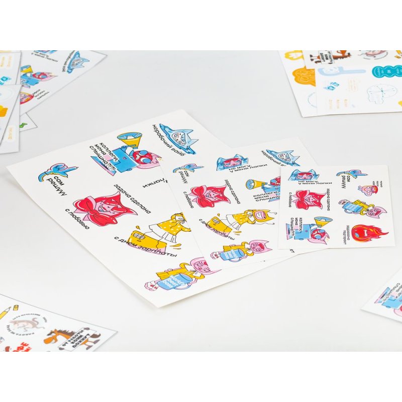 Бумажные наклейки Sticker Pack — отличный способ легко и быстро украсить рабочее место, электронику, дом или подарки. Они также являются прекрасной рекламой для повышения узнаваемости компаний, которая начинается с мелочей. Яркие наклейки не оставят клиентов равнодушными и отлично поднимут настроение.