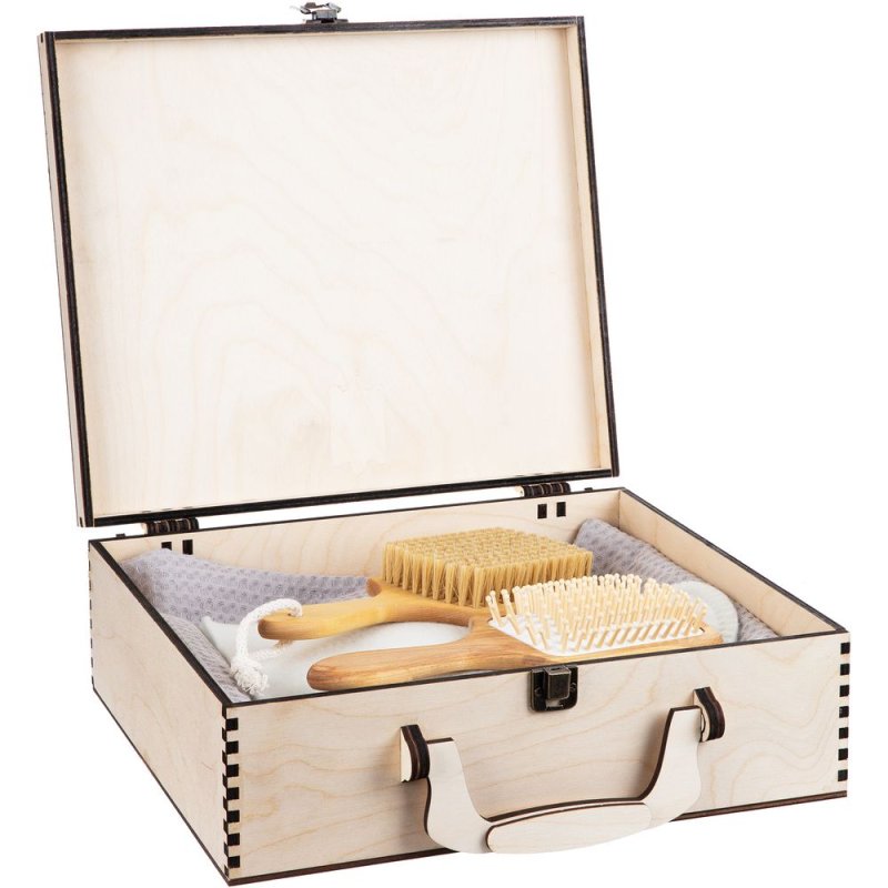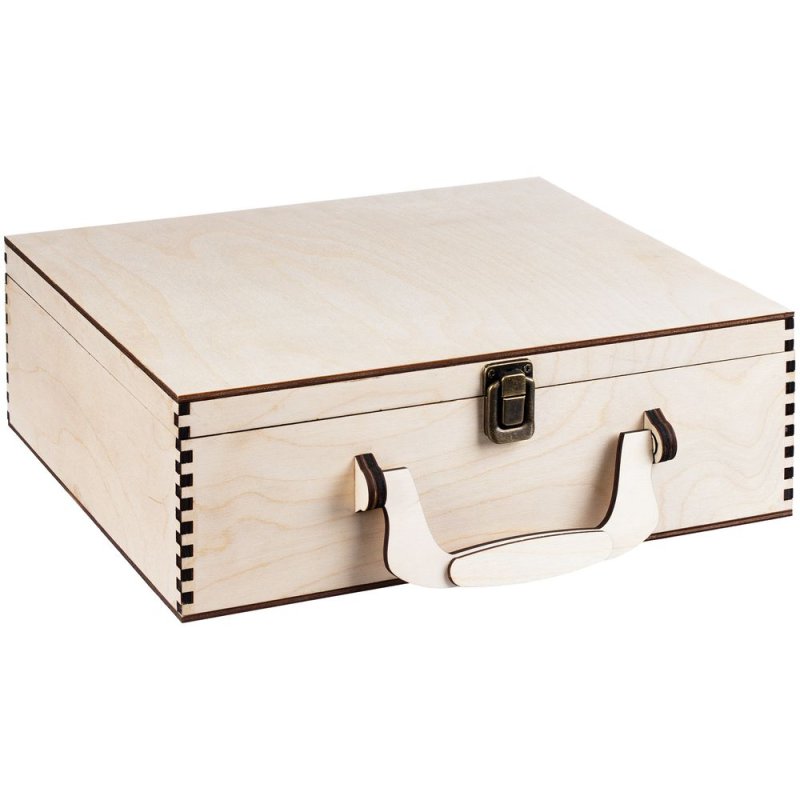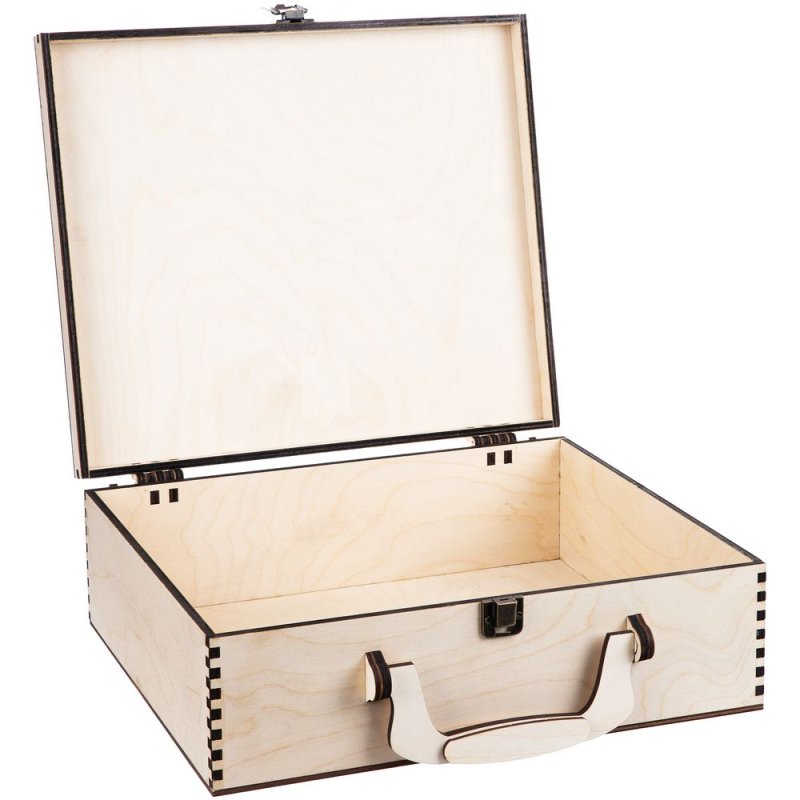 Кейс Wunderding, выполненный из березовой фанеры, станет надежной, практичной и экологичной упаковкой для самых разных подарков. Он отличается вместительностью и функциональностью. Крышка закреплена на прочных металлических петлях и фиксируется небольшим замком.
