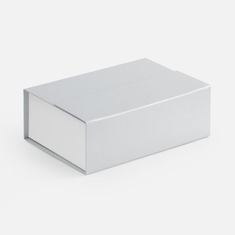Коробка выполнена из переплетного картона, кашированной гладкой дизайнерской бумагой Мalmero двух цветов.