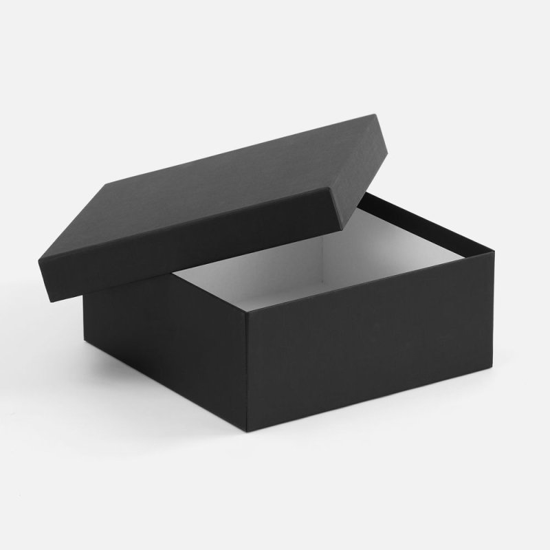 Коробка из переплетного картона, кашированная дизайнерской бумагой с тонкой текстурой Fabric Embosing Linen.
