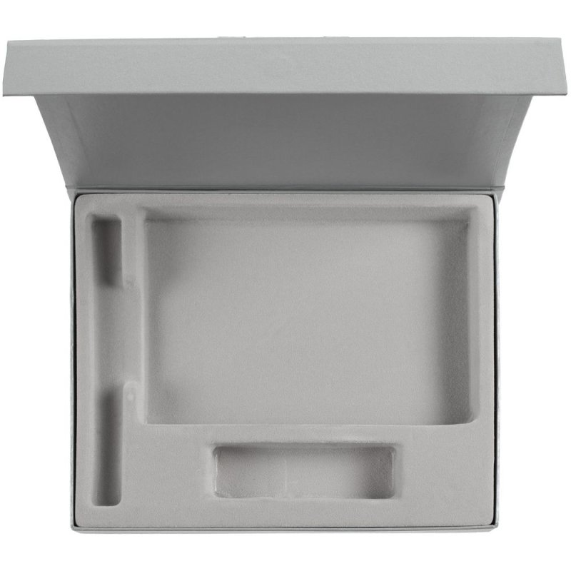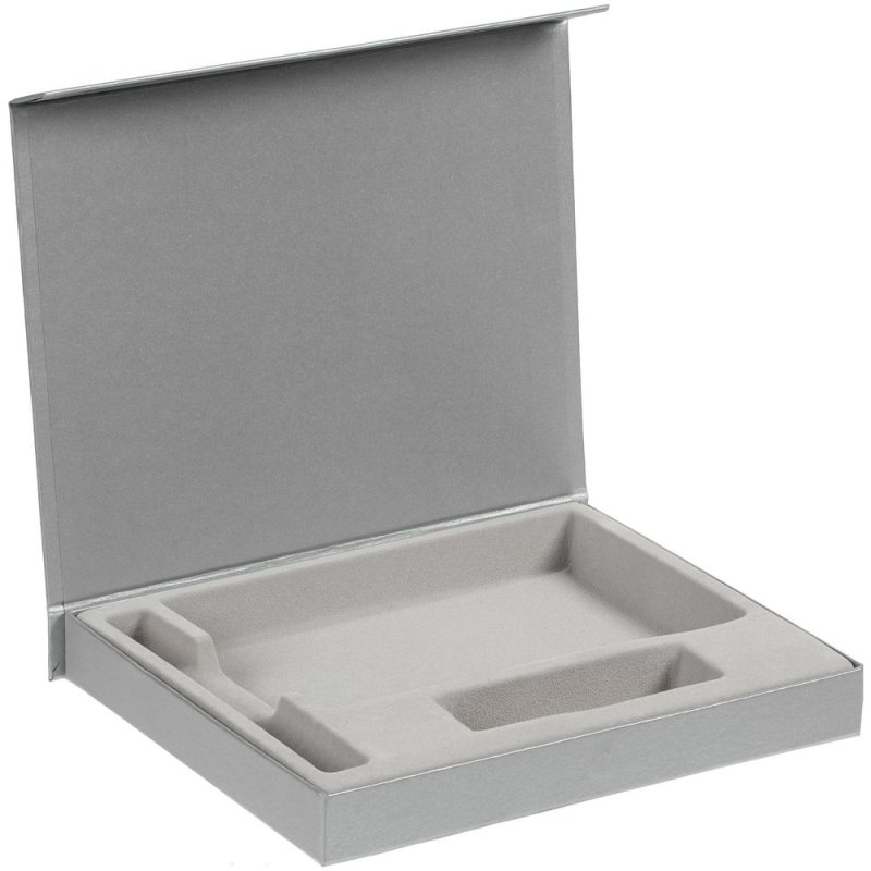 Коробка из переплетного картона, кашированного дизайнерской бумагой Majestic, с крышкой на магните и флокированным ложементом.
