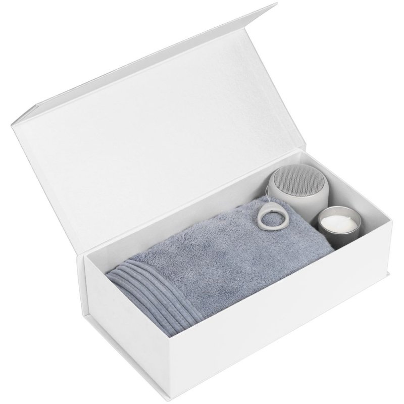 Коробка изготовлена из переплетного картона, кашированного дизайнерской бумагой Majestic, с крышкой на магните.