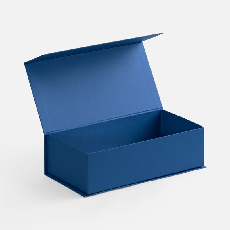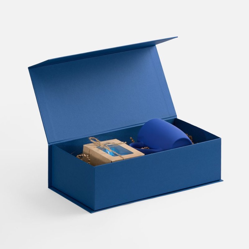 Коробка изготовлена из переплетного картона, кашированного гладкой дизайнерской бумагой Malmero, с крышкой на магните.
