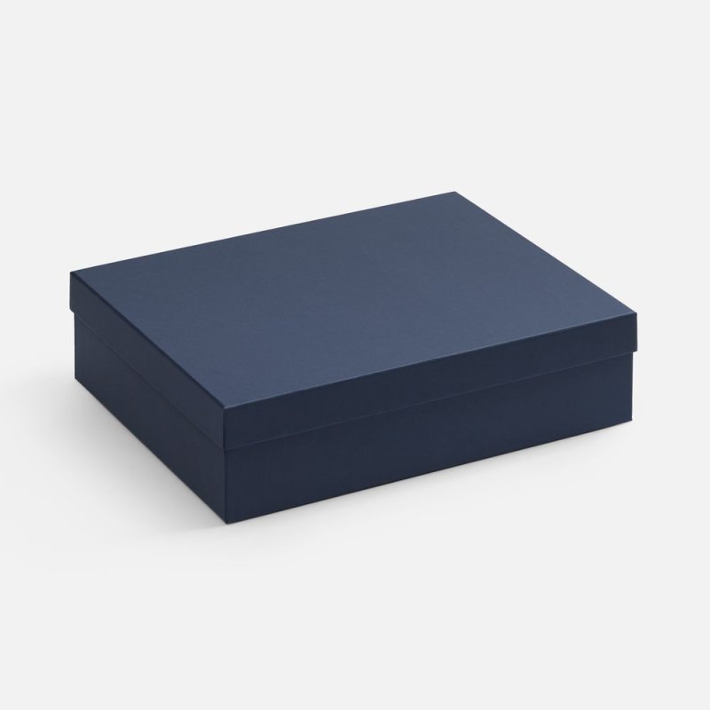 Коробка из переплетного картона, кашированная дизайнерской бумагой с тонкой текстурой Fabric Embosing Linen.