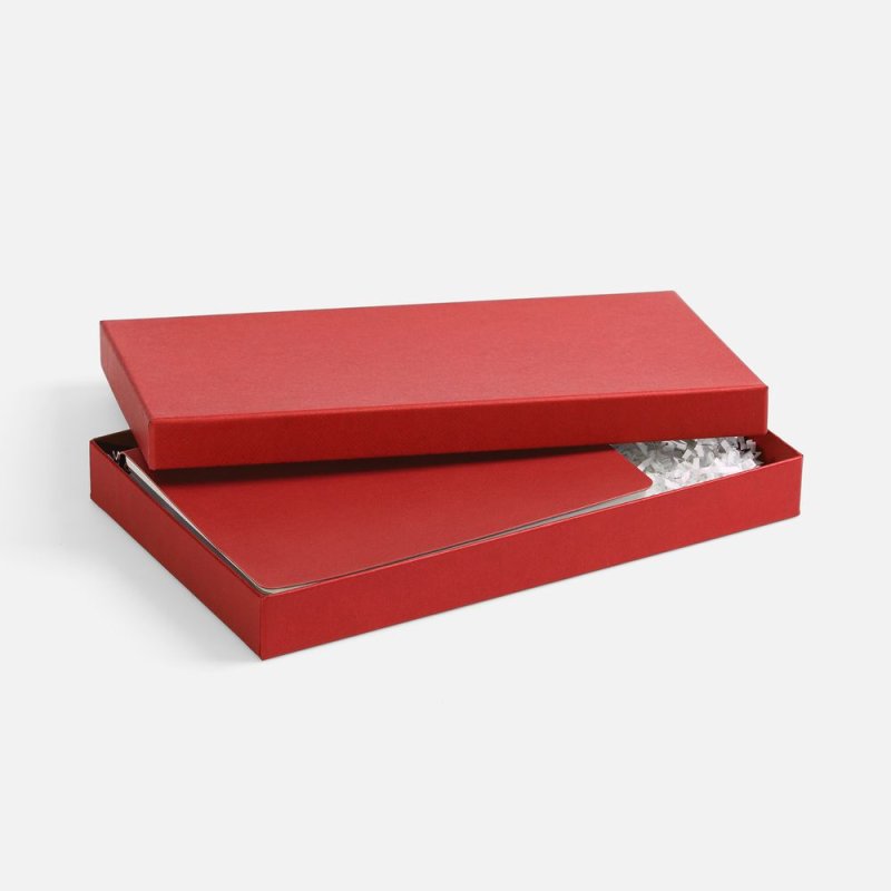 Изготовлена из переплетного картона, кашированного гладкой дизайнерской бумагой Efalin.