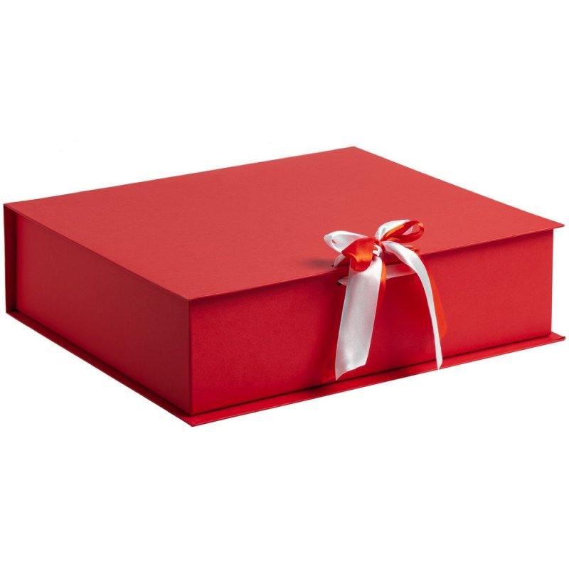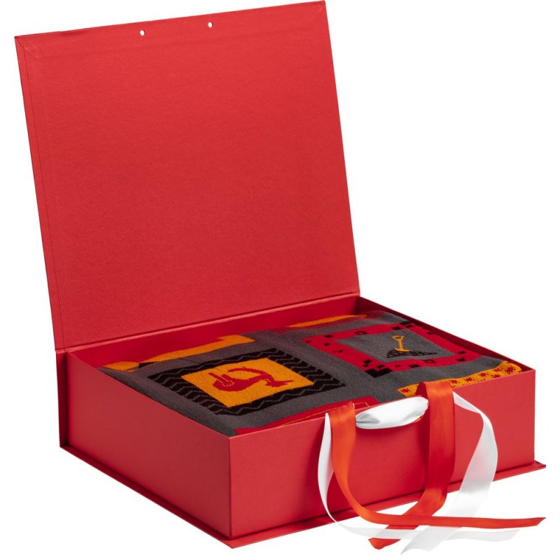 Коробка выполнена из переплетного картона, кашированного дизайнерской бумагой Efalin, с крышкой на лентах.