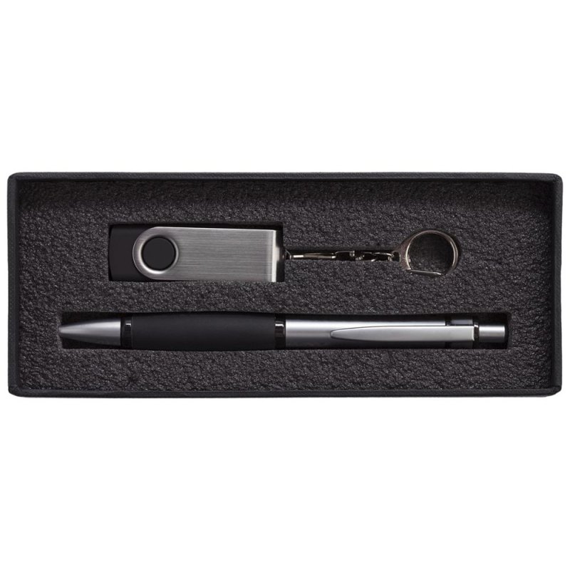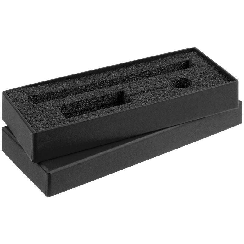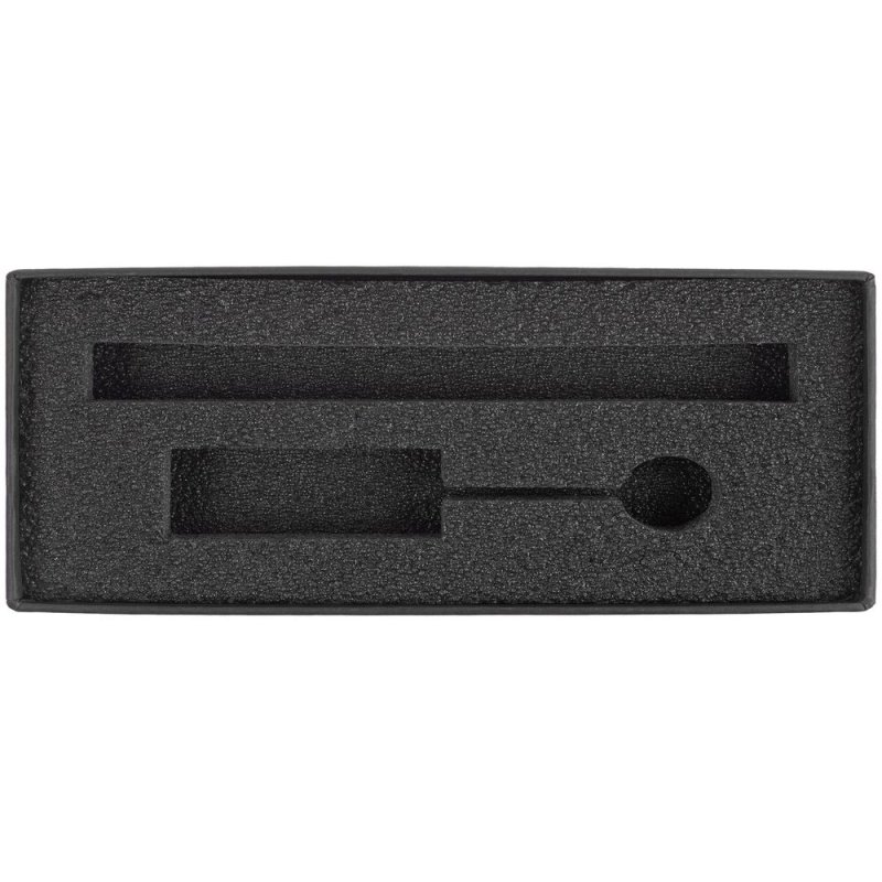 Коробка из переплетного картона с ложементом для ручки и флешки.