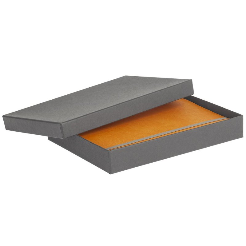 Коробка изготовлена из переплетного картона,кашированного гладкой дизайнерской бумагой Malmero.