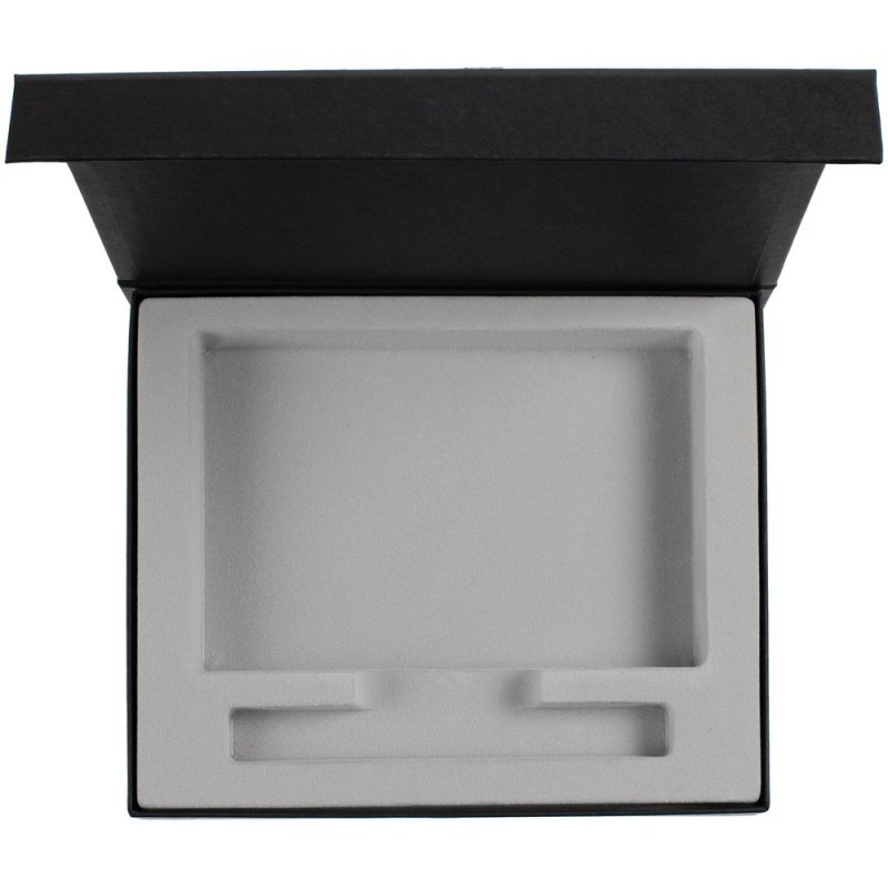 Коробка из переплетного картона, кашированного гладкой дизайнерской бумагой Efalin, с крышкой на магните и флокированным ложементом.