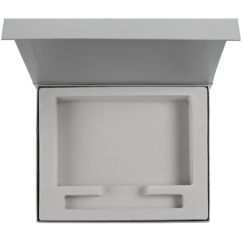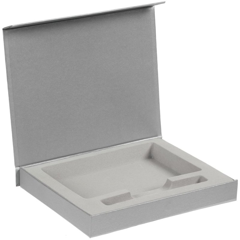 Коробка из переплетного картона, кашированного дизайнерской бумагой Majestic, с крышкой на магните и флокированным ложементом.