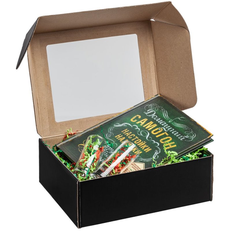Самосборная коробка с прозрачным пластиковым окном.