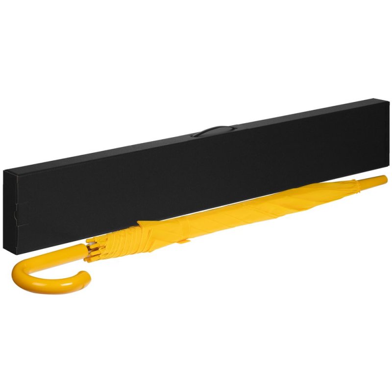 Самосборная коробка для зонта-трости с вставной пластиковой ручкой.