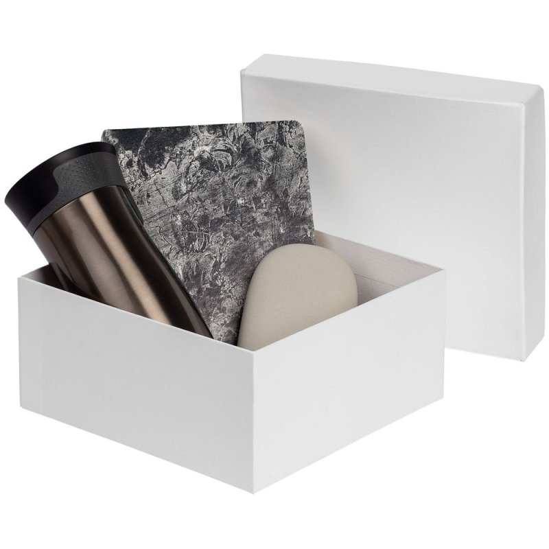 Изготовлена из переплетного картона 1,5 мм, кашированного дизайнерской бумагой Curious Metallic Virtual Pearl 120 г/м².