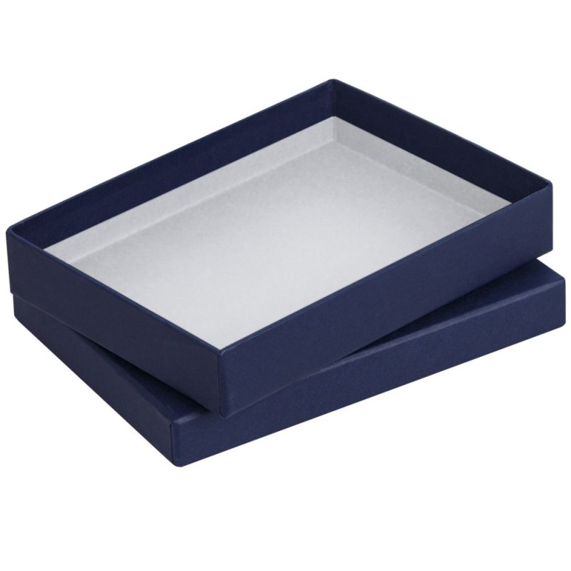 Коробка сделана из переплетного картона, кашированного дизайнерской бумагой Malmero Bleu.