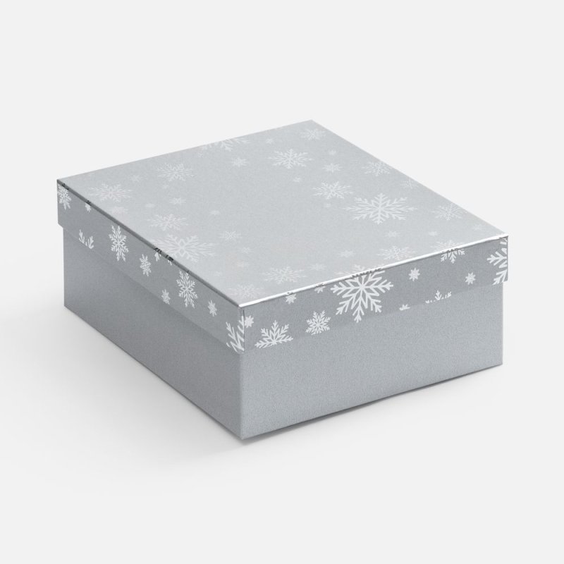 Коробка выполнена из переплетного картона толщиной 1,5 мм, кашированного бумагой TPG с тиснением серебристой фольгой.