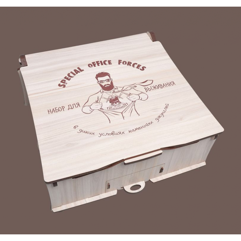Не пытайтесь повторить: опасно для жизни! Перед вами набор, предназначенный для использования исключительно в диких условиях каменных джунглей. Содержит всё необходимое: технику безопасности по общению в шефом, образец идеального работника, а также пространство для наполнения жизненно‐важными предметами. Теми, которые необходимы именно в ваших условиях!