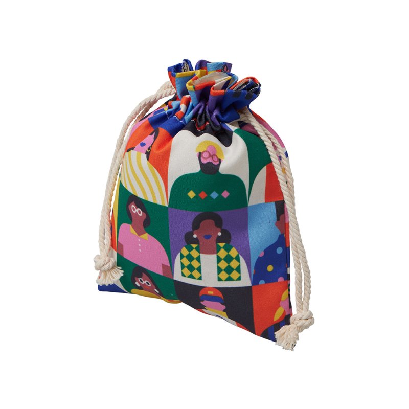 Стильная упаковка для украшений, выполненная из натурального хлопка. Маленький и удобный подарочный мешочек дополнен завязками. Текстурная ткань имеет естественный цвет неотбелённого хлопка, поэтому хорошо транслирует идеи экологичности и отказа от лишнего пластика. Полноцветная печать доступна на обеих сторонах.